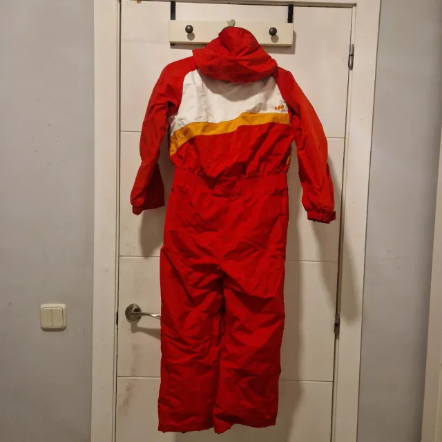 Detalles del productoMono de esquí para niños en color rojo, blanco y amarillo. Perfecto para mantener a los más pequeños abrigados y secos en la nieve.