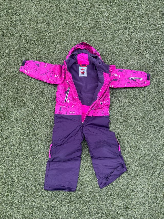 Detalles del productoMono de esquí para niña en color rosa y morado, con un divertido estampado.