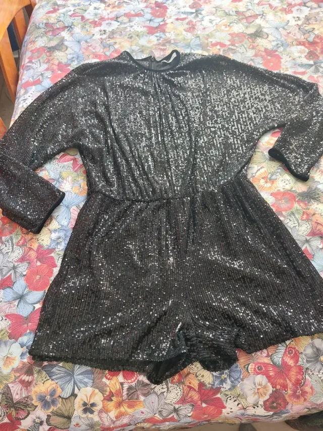Mono fiesta lentejuelas negro Zara Talla L