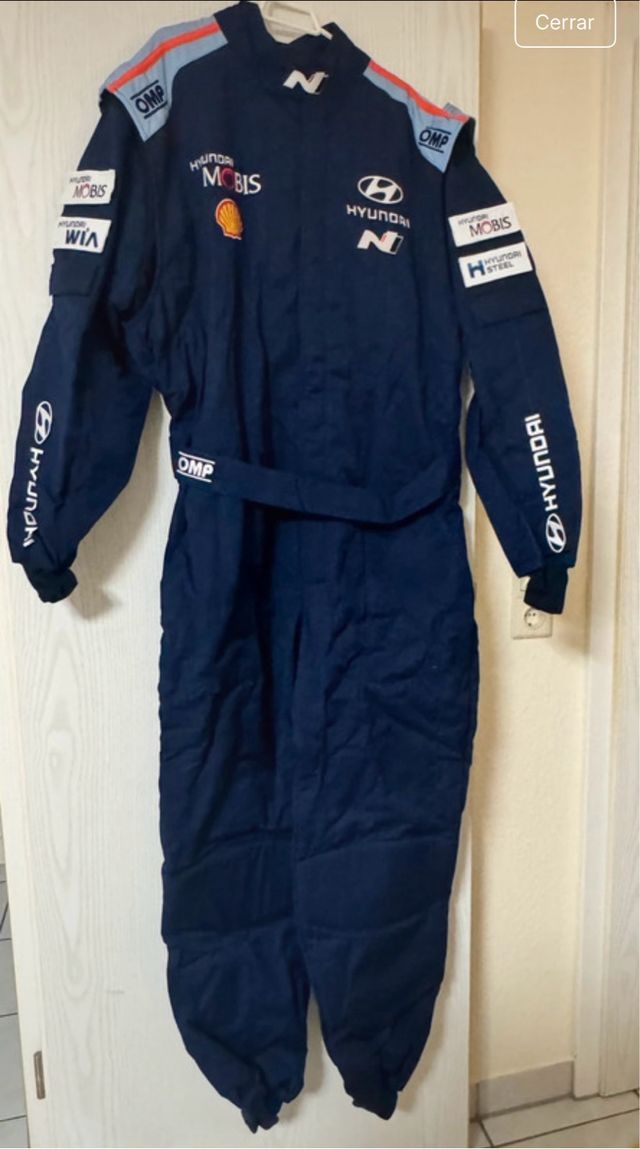 Mono de competición Hyundai Motorsport. - Color azul marino. - Logos de Hyundai N, Mobis y OMP. - Cinturón ajustable.