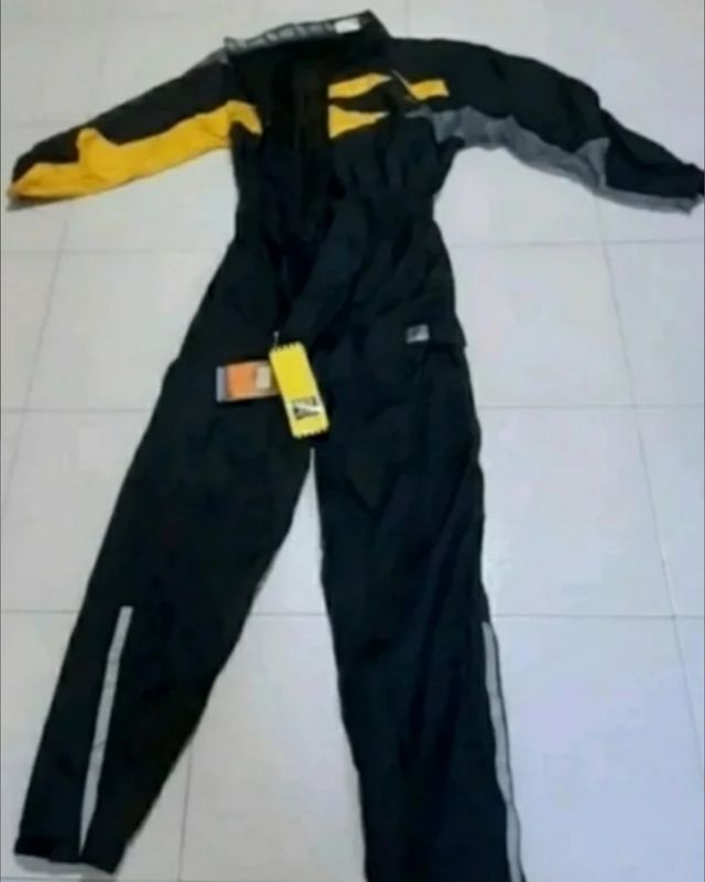 Mono impermeable negro y amarillo para moteros