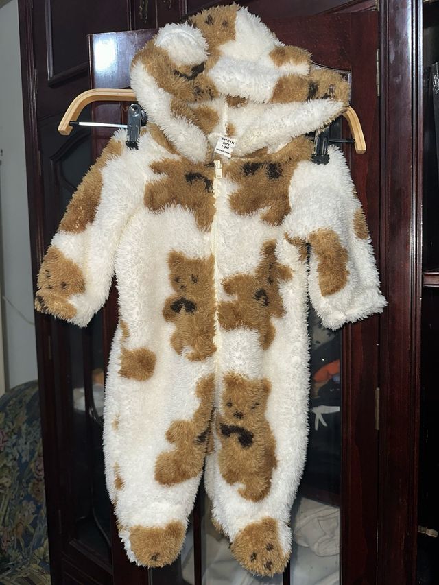 Detalles del productoMono entero de peluche con estampado de ositos, ideal para los más pequeños. Es suave y cómodo.