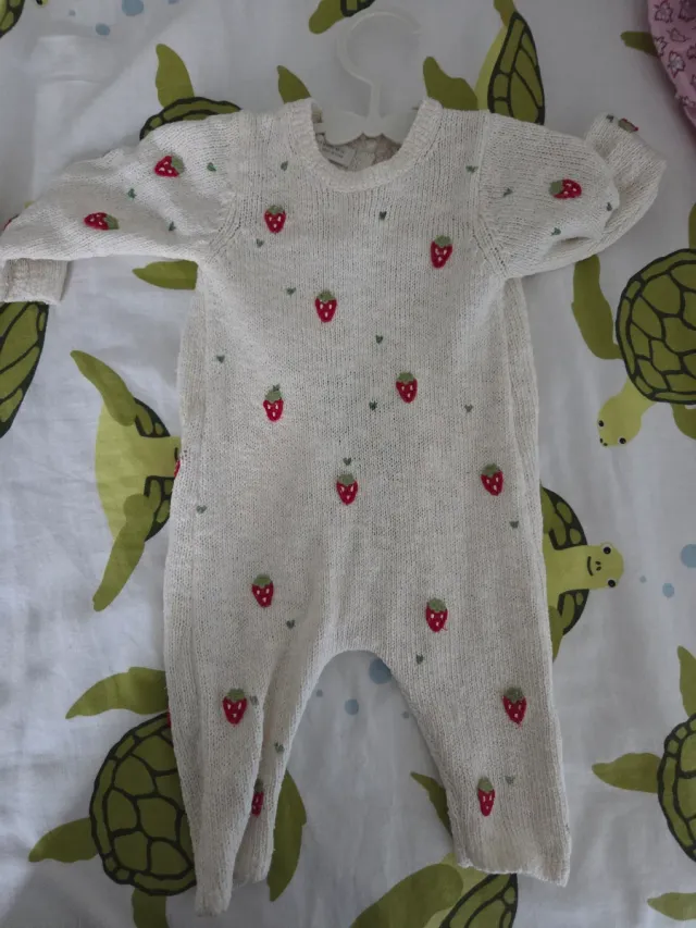 Buen estadoDetalles del productoMono de punto de Zara con un bonito bordado de fresas. Ideal para los más pequeños.