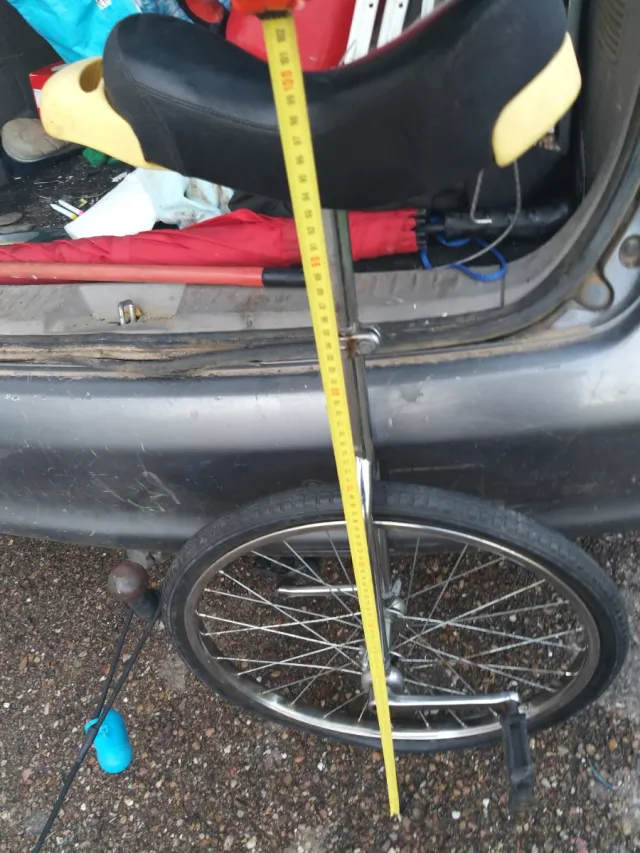 Monociclo para adulto. - Asiento negro con detalles amarillos. - Rueda de 20 pulgadas. - Pedales negros.