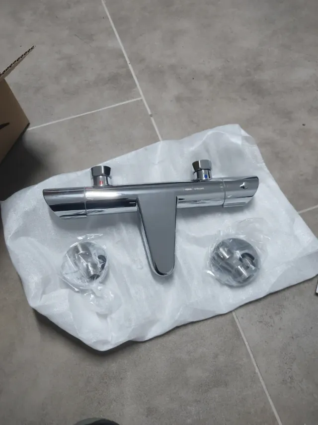 Monomando de ducha Teka, acabado cromado. - Diseño moderno y elegante. - Incluye dos embellecedores. - Material: Latón cromado.