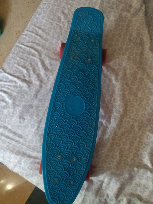 Se vende monopatín skate,mide 0,56 de largo x0,14 de ancho color azul,ruedas rojas en buen estado sin golpes,7€, visita mi perfil para más cosas.