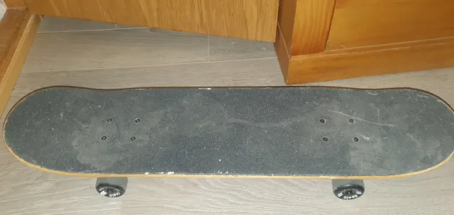 Monopatín con lija negra. - Tabla de madera. - Ruedas negras.