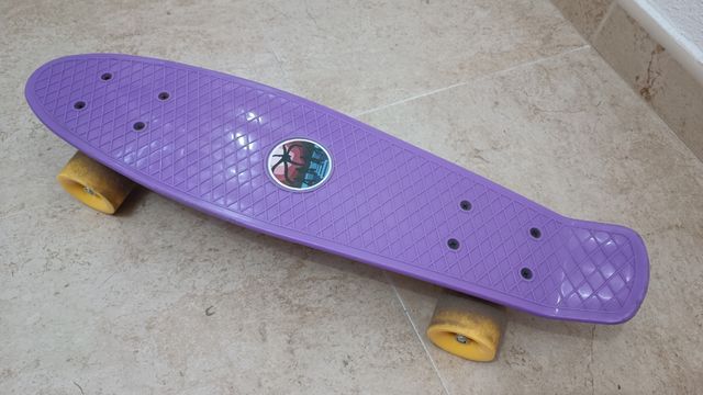 Monopatin morado con ruedas amarillas. Usado 2 veces. Para recoger en Azuqueca de Henares zona La Paloma o envío a cualquier punto de la península por 5 euros más