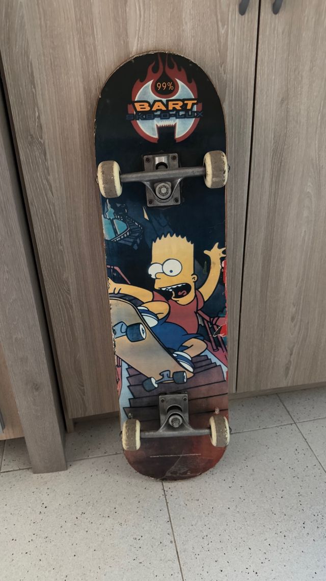 Monopatín con diseño de Bart Simpson. - Gráficos de Bart Simpson. - Ruedas de monopatín.