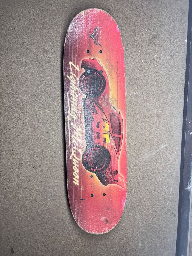 Monopatín con diseño de Lightning McQueen de Cars. Perfecto para los fans de la película. - Diseño temático de Cars. - Ilustración de Lightning McQueen.