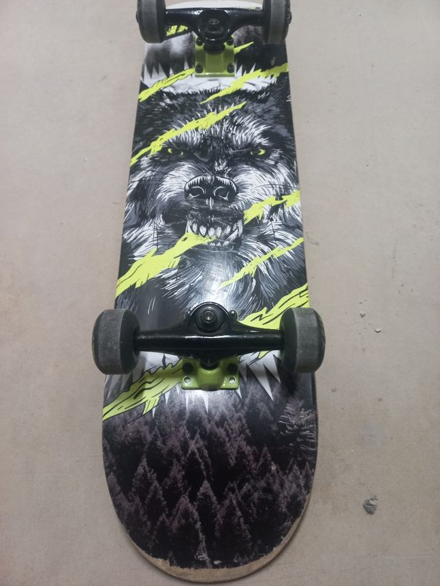 Monopatín con diseño de lobo