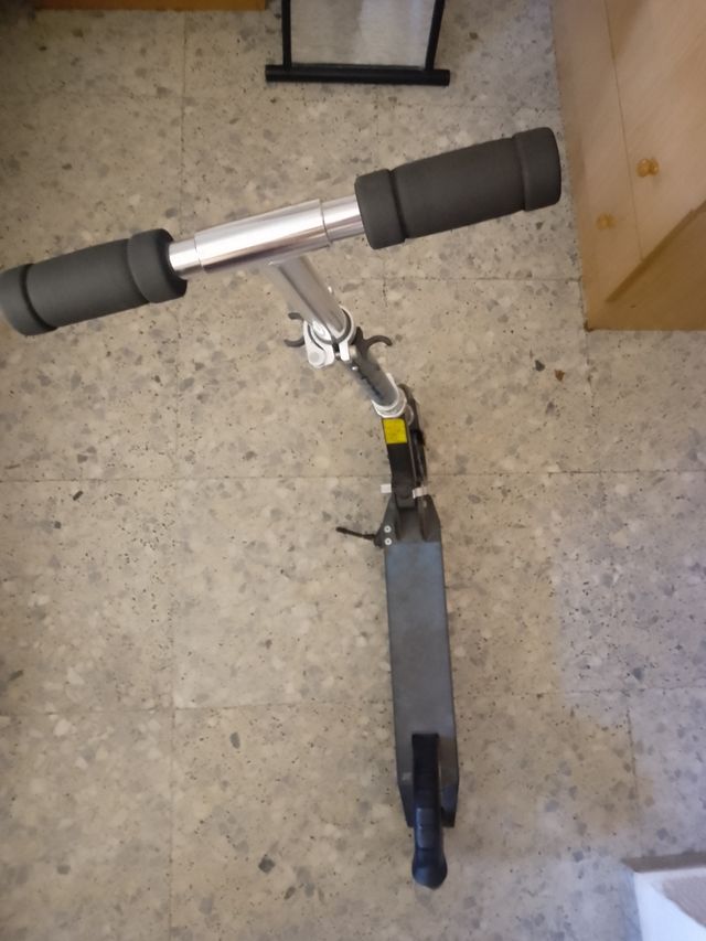 Monopatín en buen estado, ideal para desplazamientos urbanos. Cuenta con una práctica pata para poder apoyarlo. - Pata de apoyo integrada.