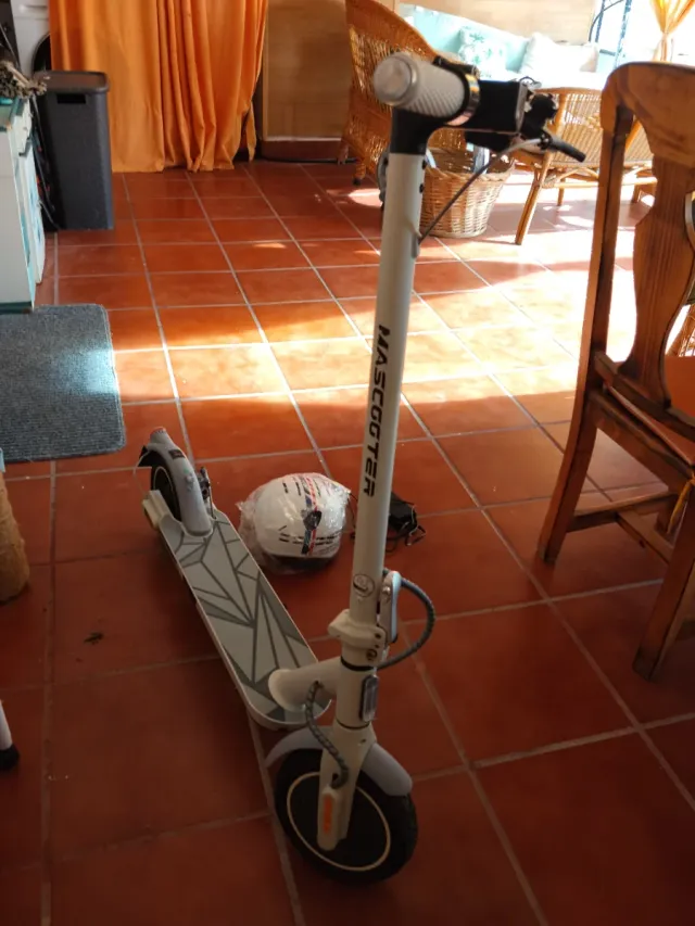 Detalles del productoMonopatín eléctrico de color blanco con diseño moderno.