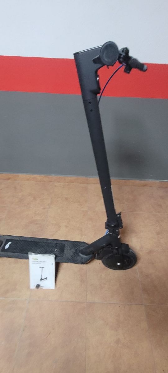 Detalles del productoMonopatín e-scooter EWA 6000 eléctrico que, tras casi dos años sin uso, no le funciona la batería. Tiene también un guardapolvos o ptotector de la rueda deteriorado. Ideal para quien sepa de reparaciones.