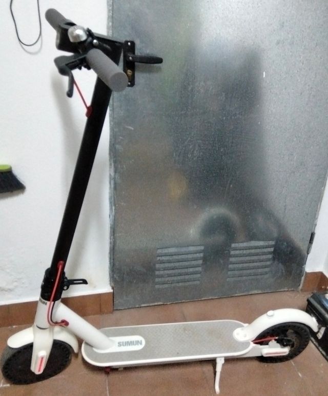 Detalles del productomonopatín electrónico plegable con enganche y pata de sujeción. No tiene batería, se estropeó por estar guardado.