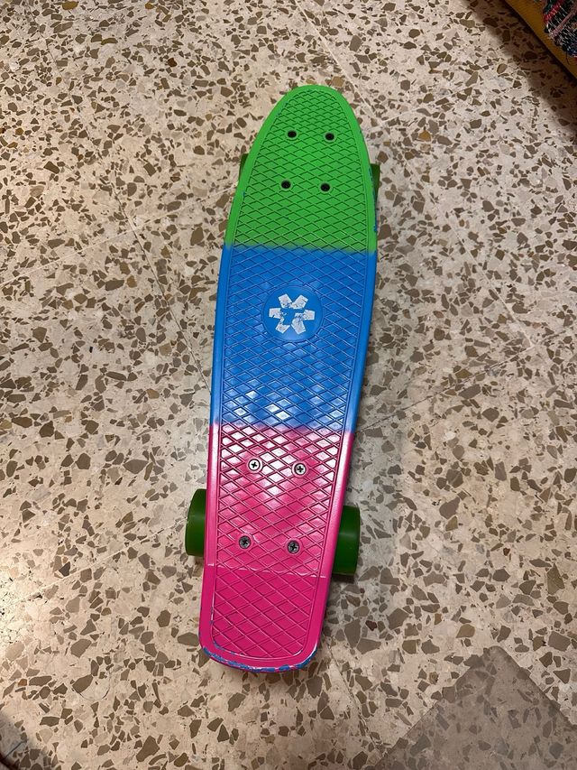 Detalles del productoMonopatín de plástico con un diseño divertido y colorido, ideal para los más pequeños.