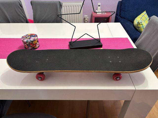 Se venden monopatin infantil Runfit. Están en buen estado. - El monopatín tiene un diseño de calavera roja sobre fondo gris. -Tiene ruedas rojas.