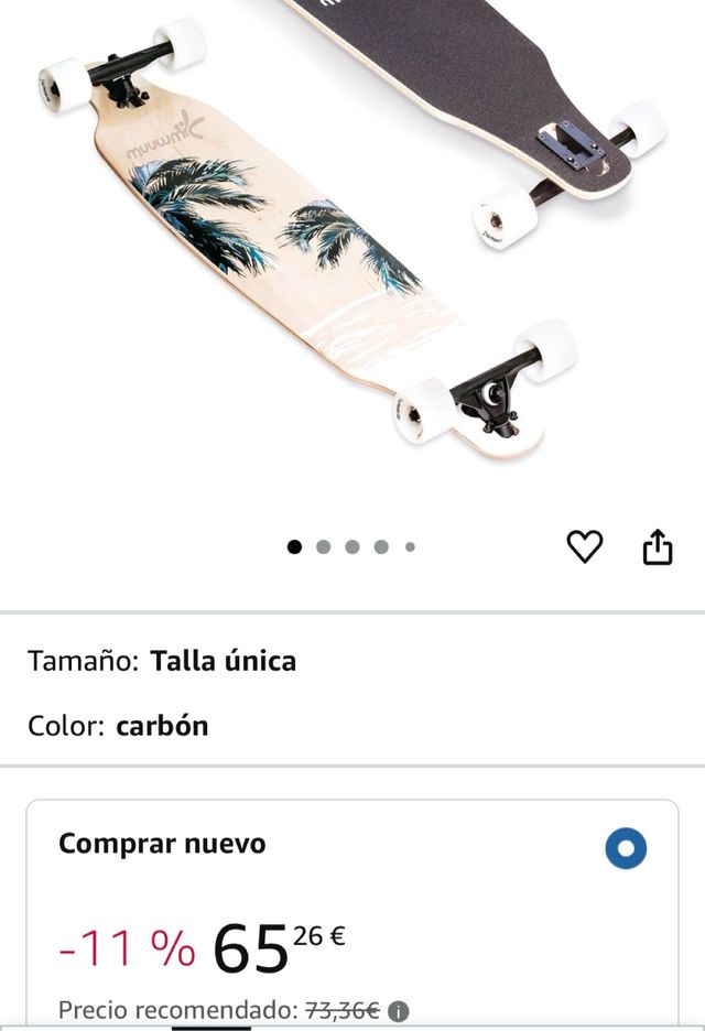 Monopatín long skate con un diseño de palmeras y playa. - Tamaño: Talla única - Color: Carbón