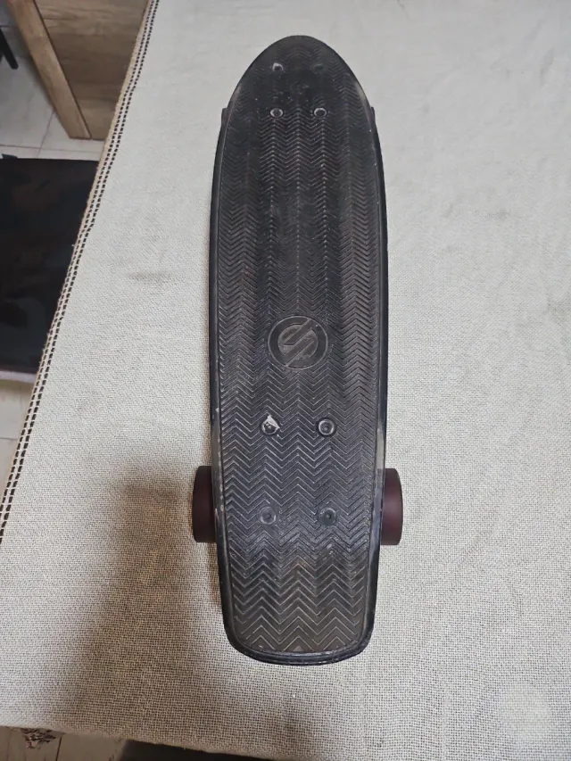 Monopatín de color negro con ruedas. - Diseño con textura. - Ruedas de color granate.