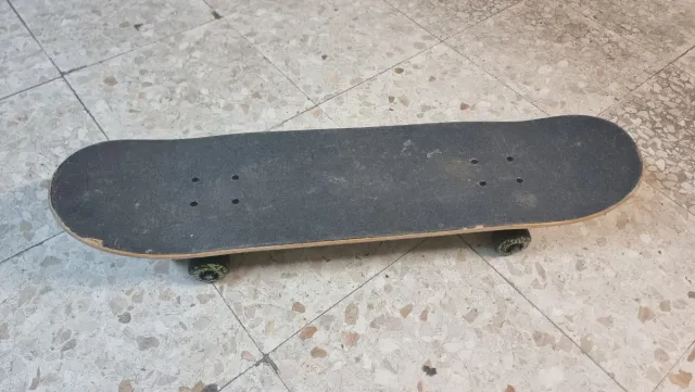 Monopatín de la marca Oxelo. - Tabla con lija. - Ruedas verdes.