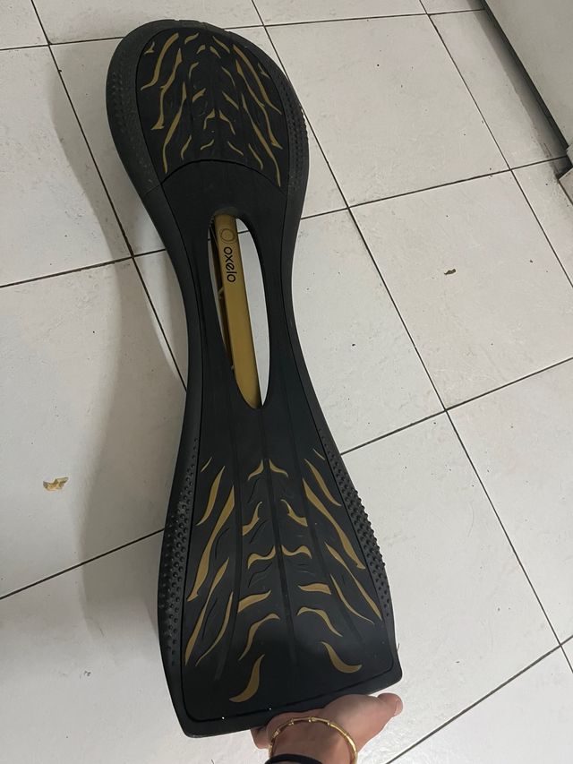 Monopatín de dos ruedas de la marca Oxelo. Diseño moderno y deportivo. - Color negro con detalles dorados. - Superficie antideslizante. - Estructura resistente.
