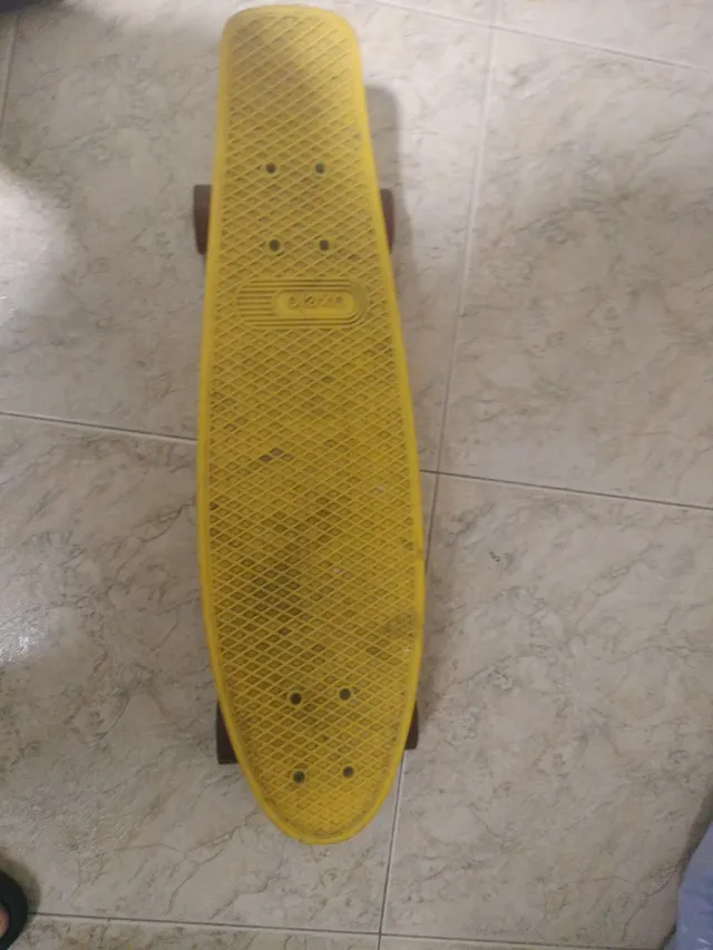 Monopatín de la marca Oxelo en color amarillo. - Diseño clásico. - Superficie antideslizante. -Esta perfectamente en cuanto a funcionamiento pero está muy sucio