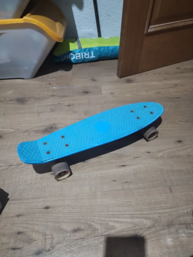 Monopatín tipo Penny de color azul. - Tabla con textura antideslizante. - Ruedas de color grisáceo.