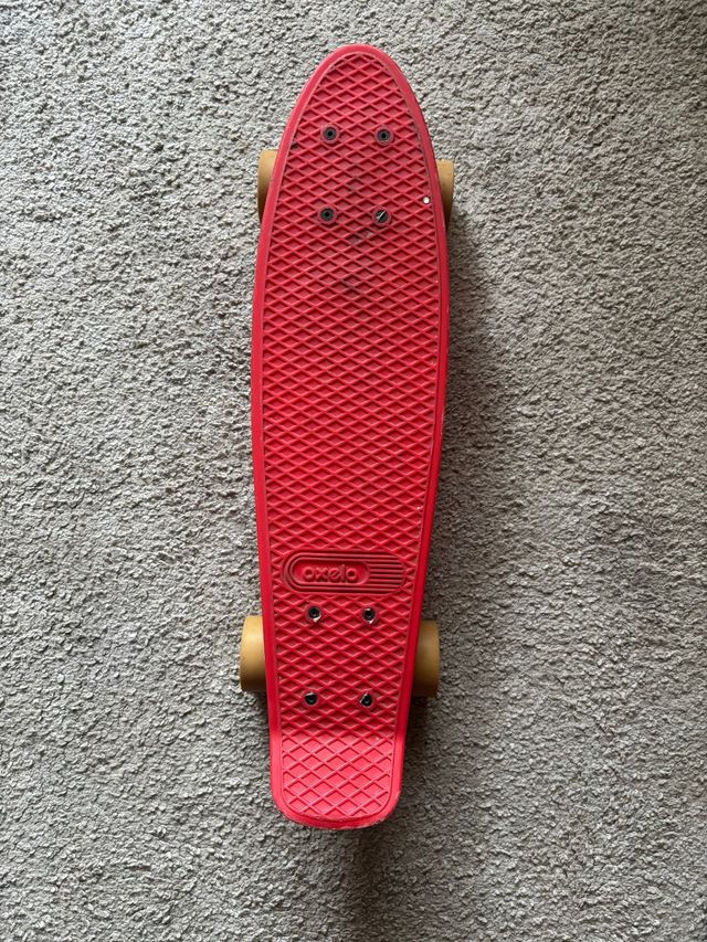 Detalles del productoMonopatín de estilo retro en color rojo, perfecto para desplazamientos urbanos.