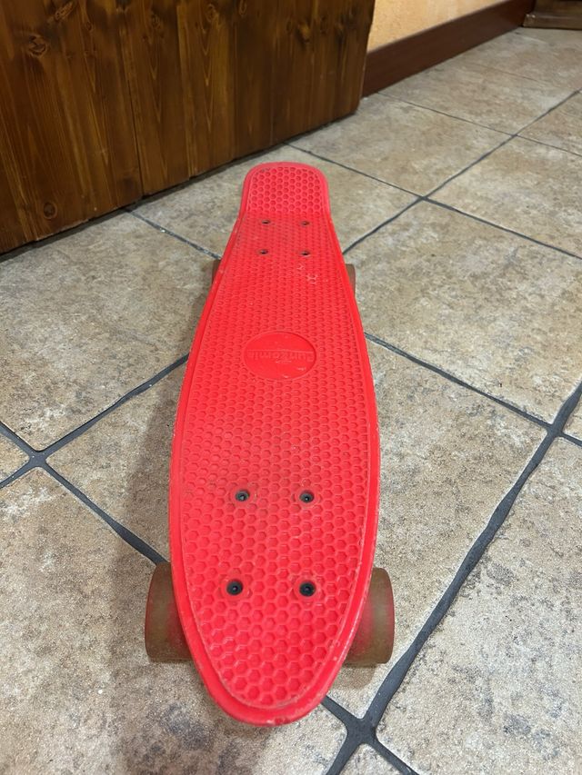 Monopatín de color rojo, perfecto para deslizarse. - Ruedas de color translúcido. - Diseño con luces integradas. - Casi sin uso como se ve en las fotos