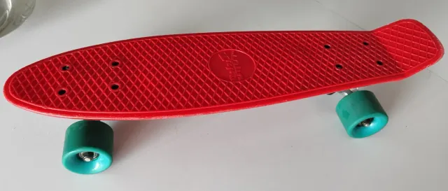 Detalles del productoMonopatín tipo Penny board de color rojo.