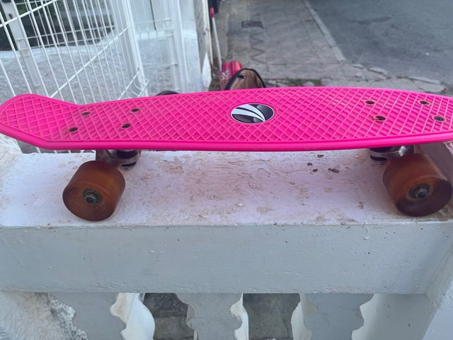 Detalles del productoMonopatín infantil en color rosa, ideal para principiantes.  Es un monopatín usado, pero está en buenas condiciones.