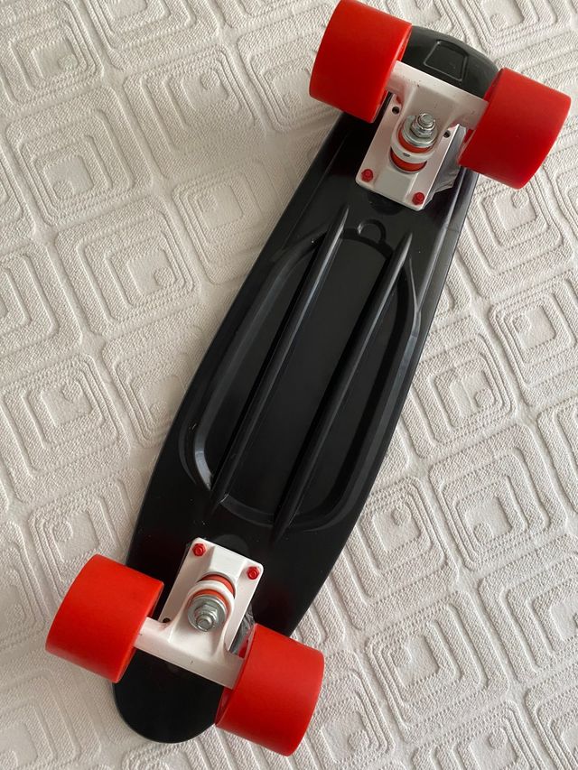 Monopatín negro Tijuana, 57 cm de longitud. En algunas partes del monopatín quedó el plástico de embalaje después de la compra, mira las fotos. Tiene arañazos de Uso.