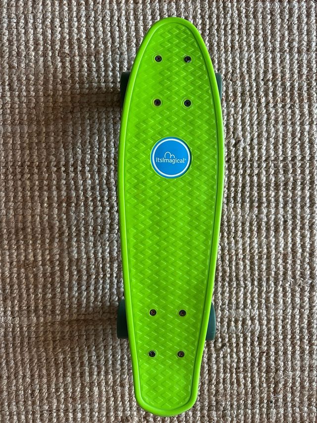Detalles del productoMonopatín de color verde brillante de la marca Imaginarium. Perfecto para iniciarse en el mundo del skate.