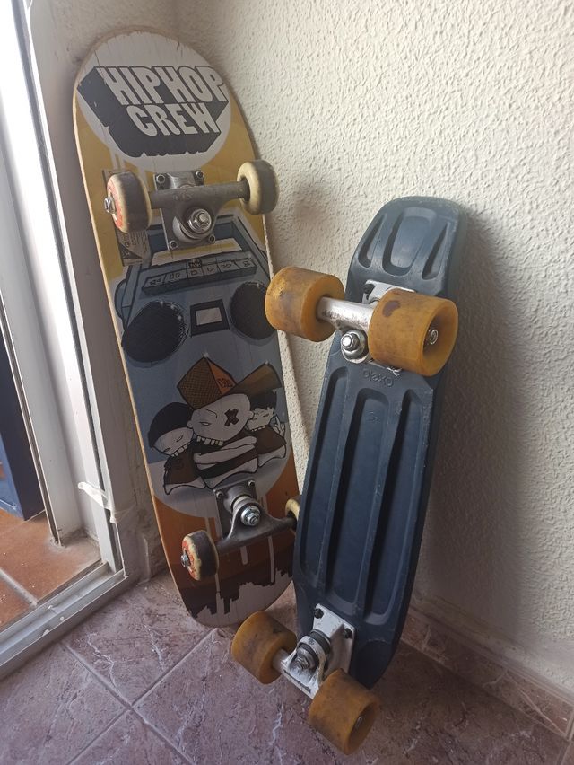 Dos monopatines de distintas superficies. Se han usado muy poco.