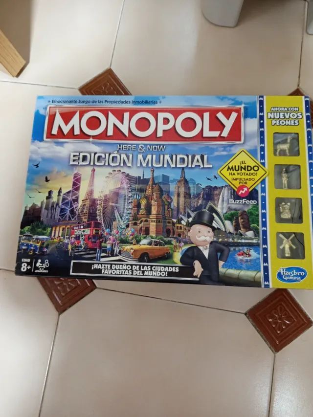 Juego de mesa Monopoly Edición Mundial Here & Now. - Edición con ciudades favoritas del mundo. - Incluye nuevos peones. - Apto para mayores de 8 años.
