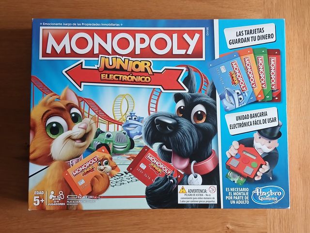 Detalles del productoJuego de mesa Monopoly en muy buen estado para niños a partir de 5 años con unidad bancaria electrónica. De 2 a 4 jugadores.