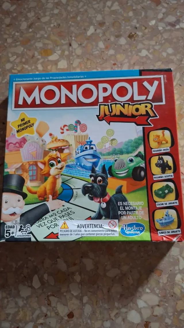 Detalles del productoJuego de mesa Monopoly Junior, ideal para los más pequeños. Es la versión Mi Primer Monopoly.