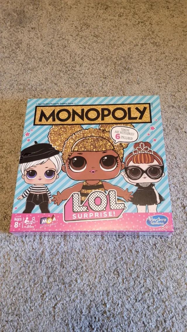 Juego de mesa Monopoly edición LOL Surprise. - Incluye 6 tokens. - Para mayores de 8 años. - De Hasbro Gaming y MGA Entertainment.