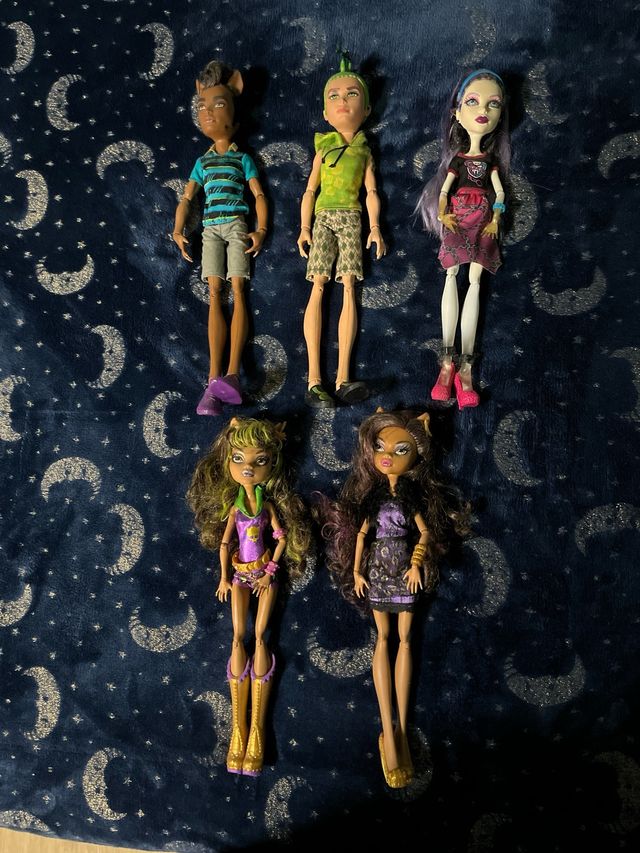 Detalles del productovendo lote de 19 monster high (precio negociable) estan con polvo y pelos con nudos de estar metidas en una caja