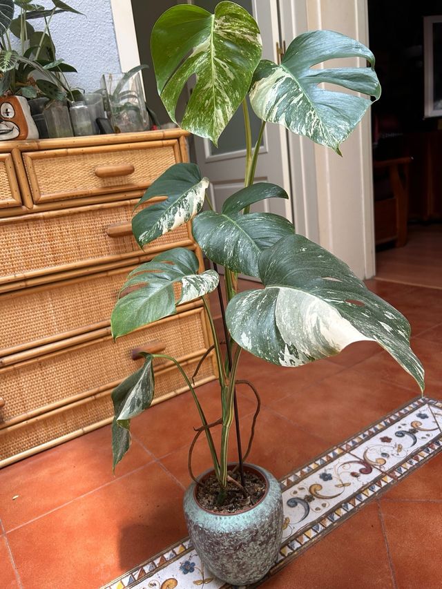 Detalles del productoPreciosa Monstera Albo Variegata en maceta. Es una planta única y llamativa, ideal para darle un toque tropical a tu hogar.