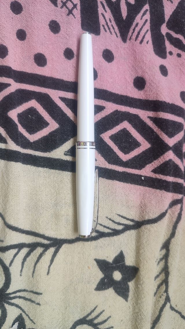 Bolígrafo estilográfico de la marca Mont Blanc en color blanco. Presenta un diseño elegante y clásico, con número de serie