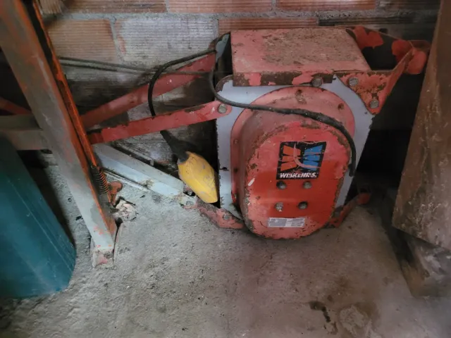 Detalles del productoMontacargas para construcción, marca WISKEHRS. Ideal para trabajos en obra.