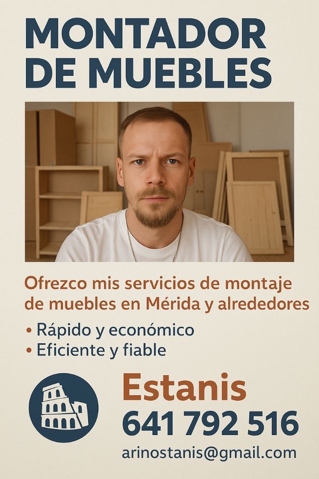 Soy Estanis, montador de muebles con experiencia y ofrezco servicios rápidos, económicos y de confianza en Mérida y alrededores.