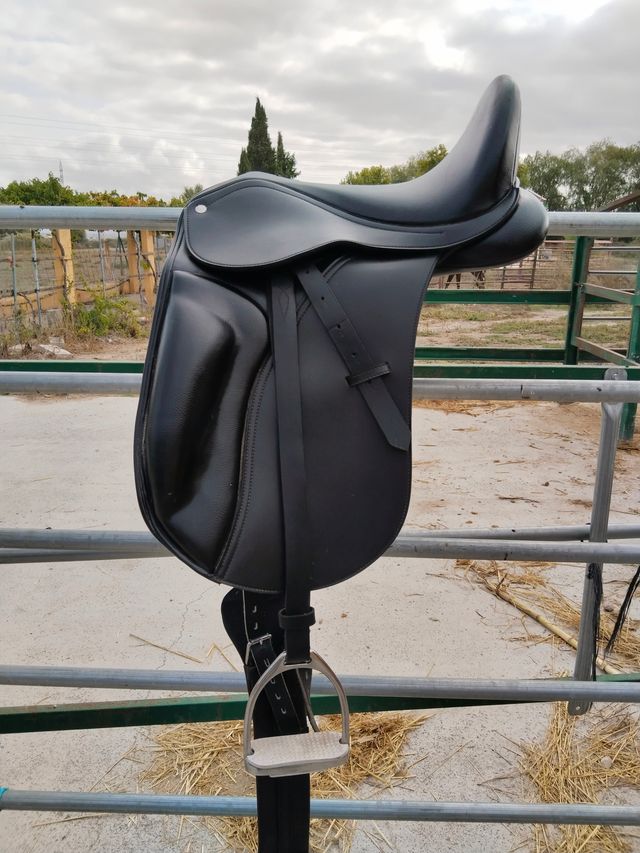 Detalles del productoMontura de doma premium de color negro, en excelente estado, casi nueva. Perfecta para equitación. 17,5 pulgadas