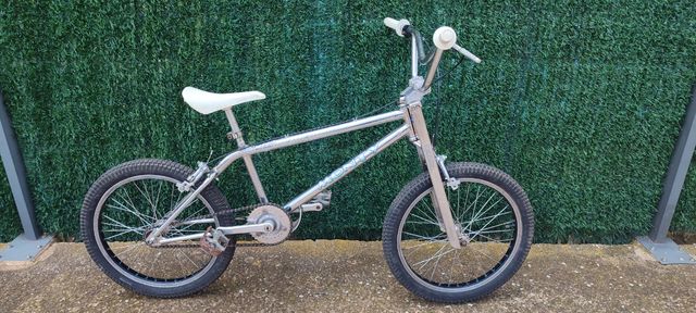 Frenos de polea, llantas akront negras,sillin plastico blanco. No esta restaurada, solo se le a echo una limpieza de cara.