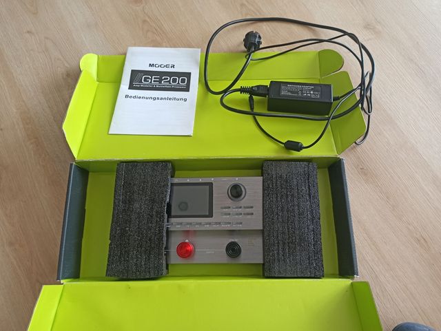 Detalles del productoProcesador de guitarra Mooer GE200 con modelado de amplificadores y multiefectos. Se vende en su caja original con los toppers puestos. Le he dado uso ocasional de pedalera de emergencias. Muy cuidada.