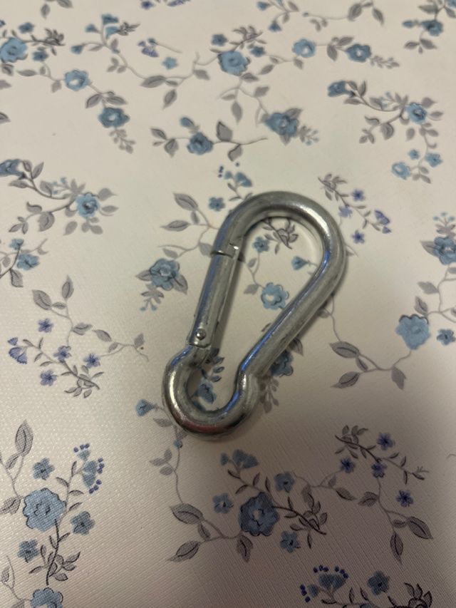 Mosquetón de metal plateado con cierre de muelle. - Material: Metal. - Color: Plateado.