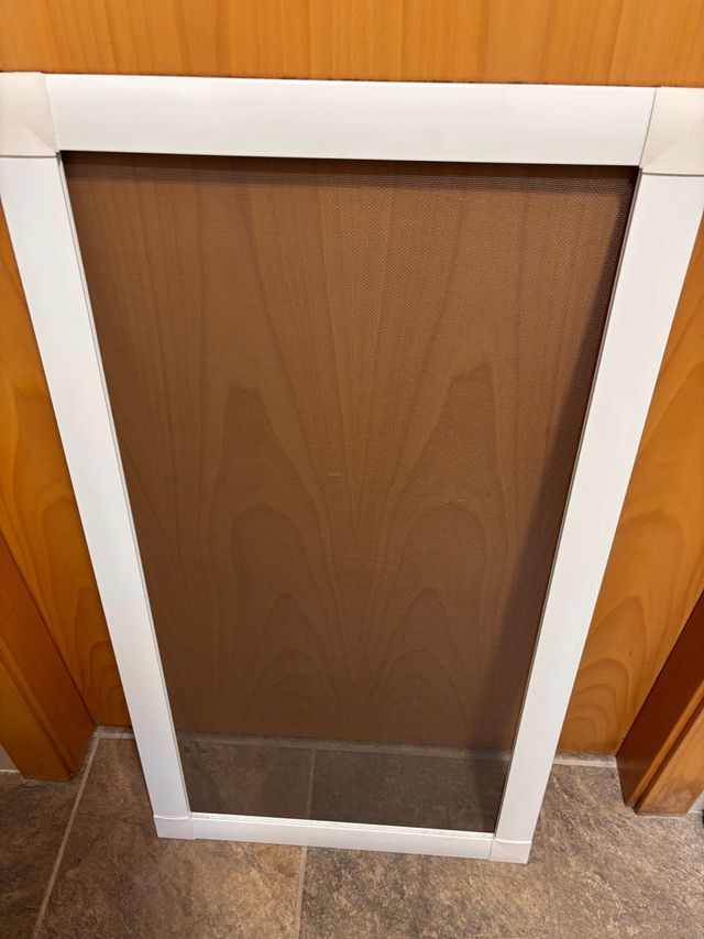 Mosquitera de marco blanco con malla marrón. - Medidas: 43 cm de ancho x 94 cm de alto. - Marco de aluminio blanco.