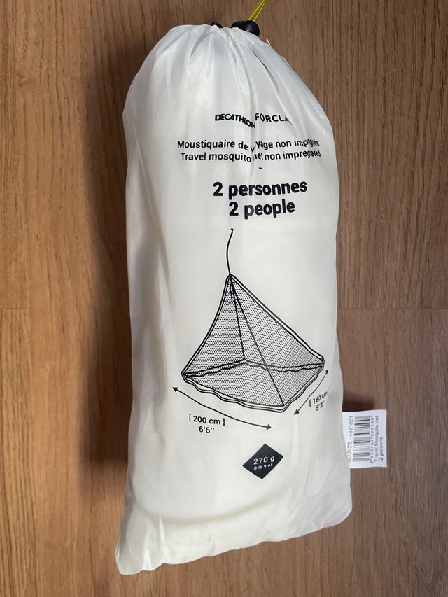 Detalles del productoMosquitera de viaje Decathlon Forclaz para 2 personas. Es ligera y fácil de transportar.