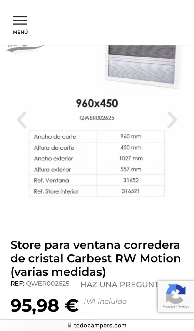 Detalles del productoStore mosquitera + oscurecedor carbest RW Motion para ventana lateral furgoneta/caravana/autocaravana camper de 906x450mm